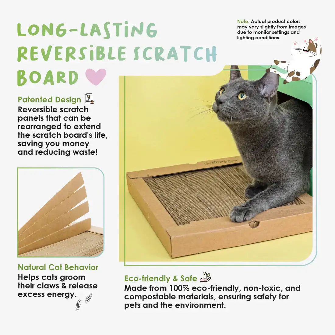 🐾 PATENTED DESIGN: Reversible scratch panels that can be rearranged to extend the scratch board's life, saving you money and reducing waste.