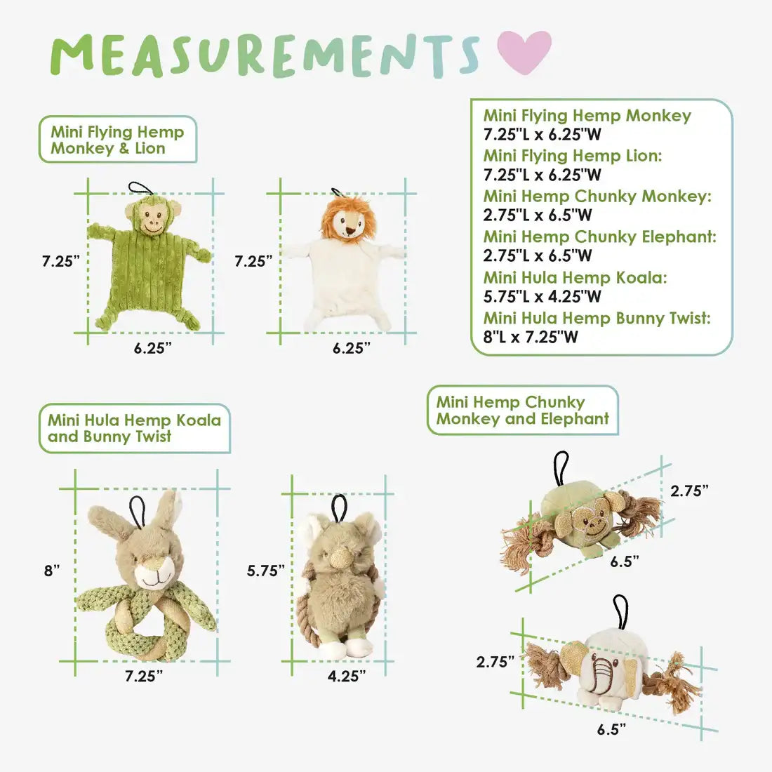 🐨 Mini Hula Hemp Koala and Mini Hula Hemp Bunny 🐰: Engaging twist design, squeaky & made from non-toxic hemp. Ideal for active pets! Natural fibers help clean teeth and massage gums.