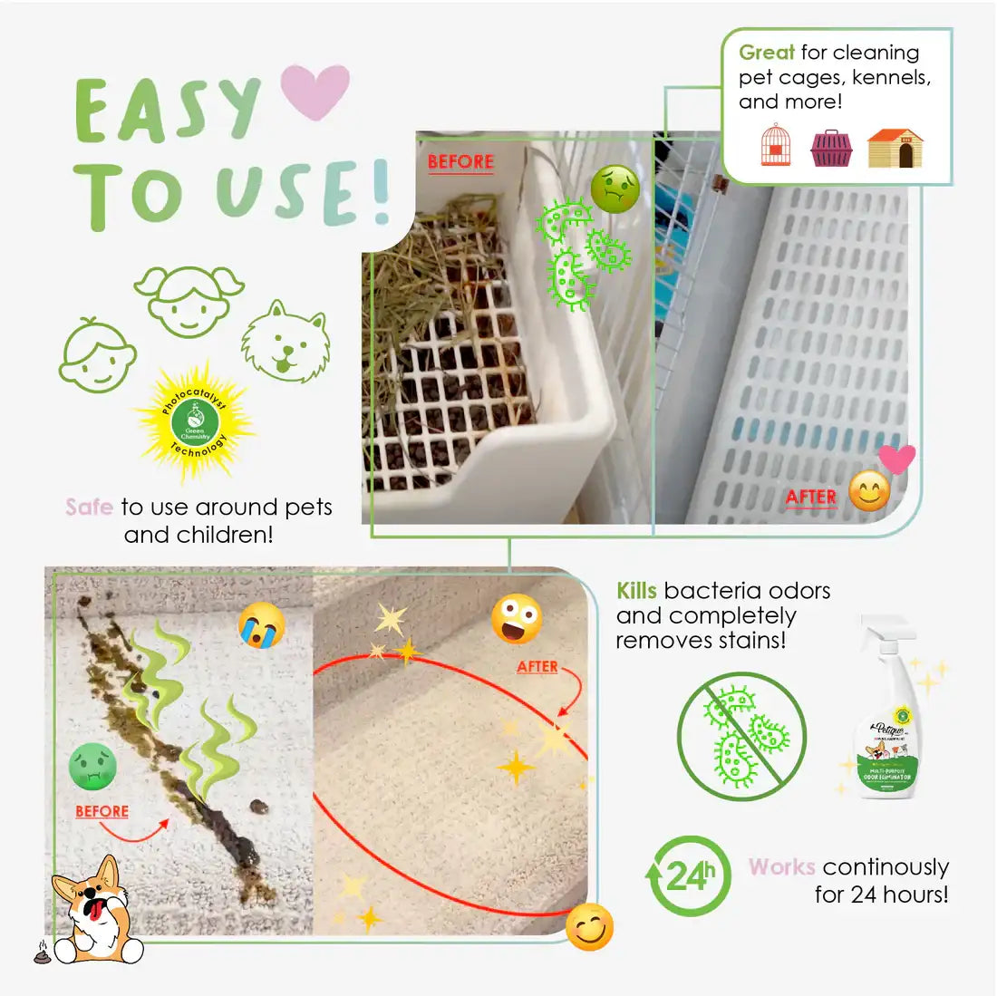 ✨ EASY AND EFFECTIVE: Works within 30 seconds even in low light conditions, providing quick and efficient odor and stain removal.