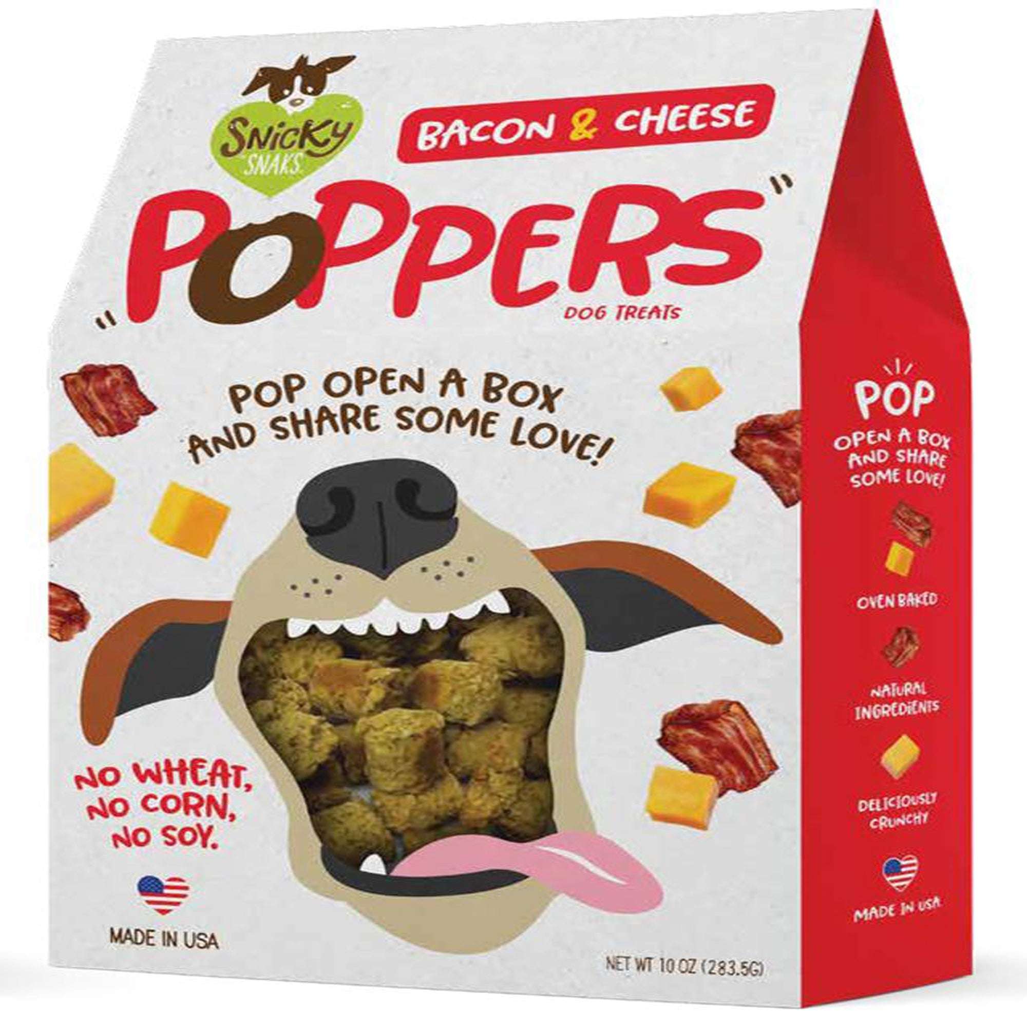Snicky Snaks Bacon and Cheese Poppers Dog Treats a great option to keep your cookie jar full! Bite-sized and available in many flavors, these crunchy biscuits are household favorites!