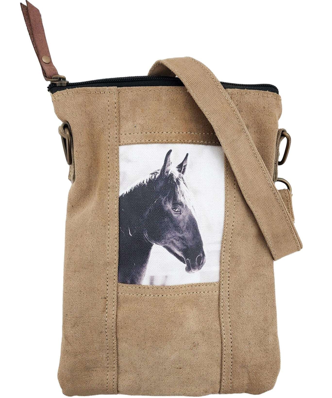 Horse Recycled Military Tent Small Crossbody