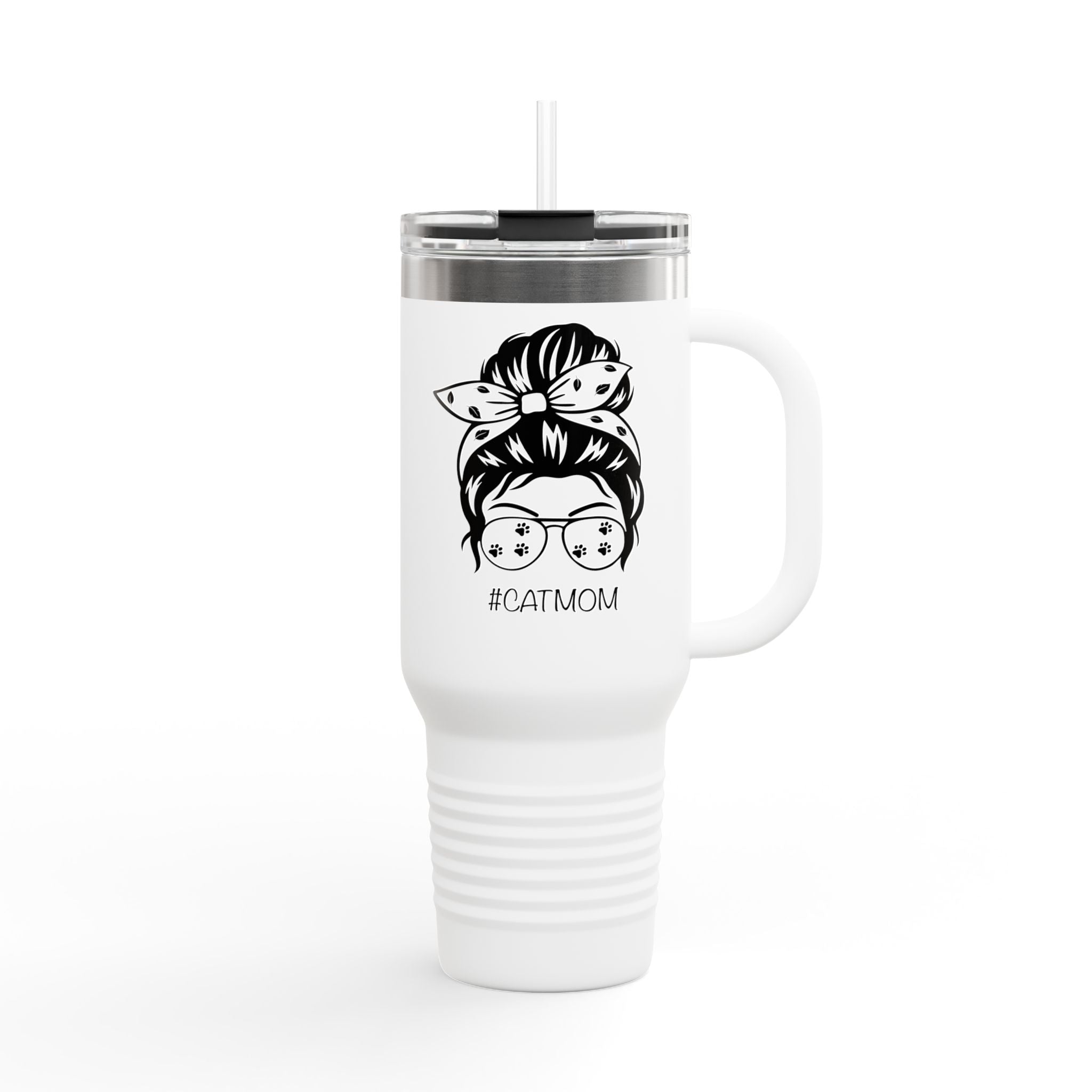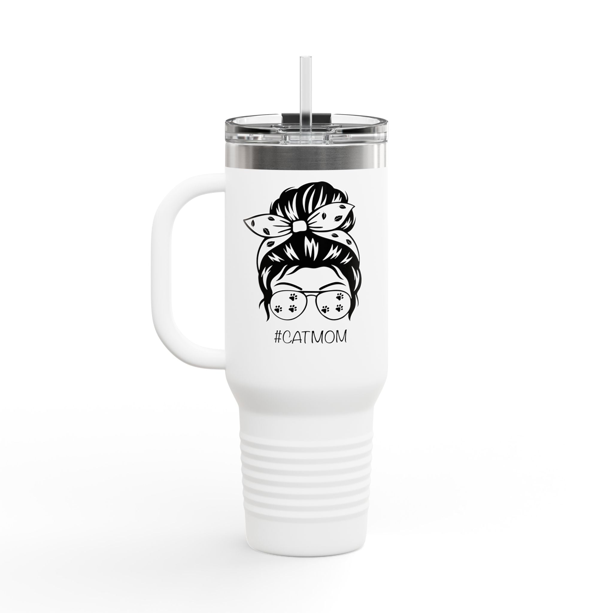 Stay refreshed on the go with this stylish Cat Mom Insulated Travel Mug. With a large 40oz capacity, it’s perfect for long journeys, outdoor adventures, or simply enjoying your favorite beverage at home. The double-wall insulation keeps drinks hot or cold for hours, providing comfort whether you're commuting or camping. Featuring an ergonomic handle, this travel mug fits perfectly in your hand and makes sipping effortless. The leak-proof lid ensures you can carry it in your bag without worry. Ideal for busy individuals, coffee lovers, and outdoor enthusiasts, this mug is a fantastic gift for holidays, birthdays, or any occasion requiring a thoughtful present. Available in multiple colors, it suits various tastes and makes a statement wherever you take it.